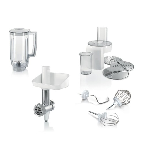 • Шатківниця з дисками: двосторонній диск для нарізання скибочками товсто/тонко; двосторонній диск для нарізання скибочками товсто/тонко; диск-тертка (дрібно)