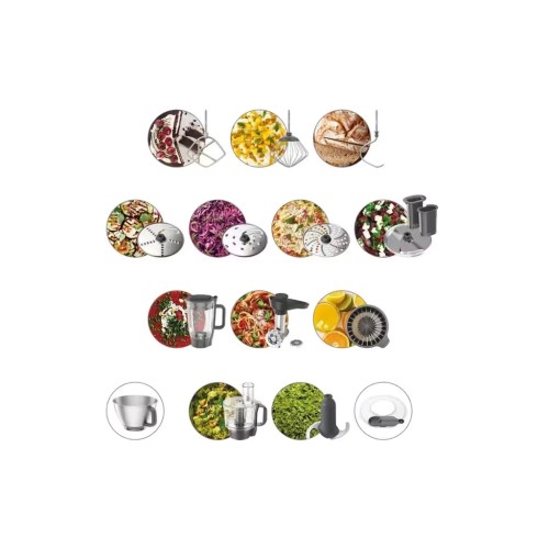 До комплекту входять необхідні насадки і аксесуари для приготування різноманітних страв: