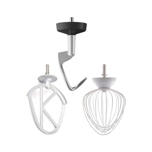 Спочатку прилад поставляється з трьома насадками: К-подібною (для перемішування), гаком-тестомісом, металевим віночком (ідеальний для приготування рідкого тіста та/або збивання яєць). Завжди можна докупити ще понад 20 змінних аксесуарів, доступних у каталозі на нашому сайті. У тому числі повнофункціональний блендер із місткою чашею або м'ясорубкою. Насадки, що підключаються до верхнього приводу, працюють від двигуна, їх швидкість також задається поворотним боковим перемикачем.