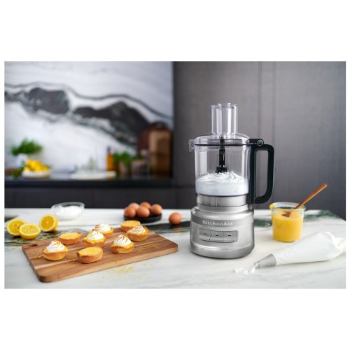 Кухонний комбайн KitchenAid 5KFP0921ECU є компактним, але універсальним. Відмінний помічник на кожен день для тих, хто хоче відкривати та пробувати нові рецепти та страви будинку, не витрачаючи годинника на обробну дошку. Наріжте, натріть, подрібніть, замісіть, збийте, змішайте і перетворите на пюре все, від свіжих овочів до сиру, тіста, соусу, сальси та багато іншого. Помістіть рідкі інгредієнти, такі як масло, в піддон для крапель, щоб вони сочилися під час обробки.