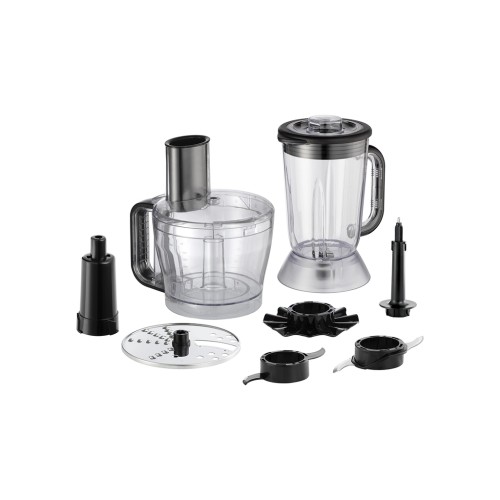 Якщо ви хочете впоратися з підготовкою інгредієнтів для приготування їжі за допомогою одного універсального, швидкого й ефективного приладу, зверніть увагу на кухонний комбайн Desire від Russell Hobbs. Він пропонує вам чашу для обробки об'ємом 2,3 л і основний контейнер об'ємом 1,5 л. Таким чином, у вас достатньо потужності та місткості для обробки сировини, щоб ви могли легко запросити друзів на чудову страву. Це ідеальне доповнення до будь-якої зайнятої кухні, він має чотири види практичних насадок, 2 швидкості та імпульсний режим для кращого контролю. Він впорається з будь-якими операціями з подрібнення, змішування або перемішування, тож у вас буде достатньо часу і простору, щоб довести до досконалості улюблений рецепт, перш ніж ви зголоднієте! Знімні деталі безпечні для посудомийної машини, тому, закінчивши приготування, ви можете легко помістити їх у посудомийну машину або раковину.