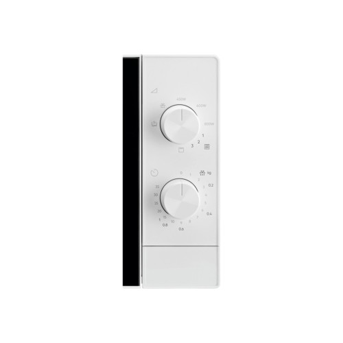 Об'єм мікрохвильової печі становить 20 літрів, що є оптимальним для щоденного використання, дозволяючи легко і швидко приготувати чи розігріти страву для сім'ї. З потужністю НВЧ у 800 Вт, Electrolux EMZ421MMW швидко виконує свої завдання, економлячи ваш час.