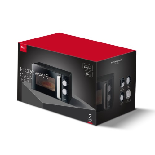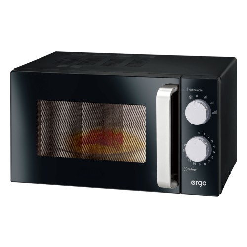 ERGO EM-2365 – це сучасна мікрохвильова пічка у практичному чорному кольорі з доволі містким внутрішнім простором 23 літри, діаметром поворотного столу 27 см та значною потужністю 900 Вт, яка швидко та рівномірно розігріє або розморозить великі порції продуктів.