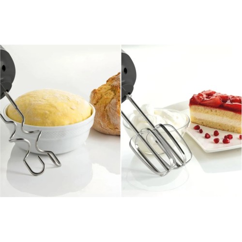 У комплект ручного міксера входять ретельно продумані віночки з нержавіючої сталі та гаки для тесту. Ідеально підходить для приготування печива, хліба або збитих вершків.