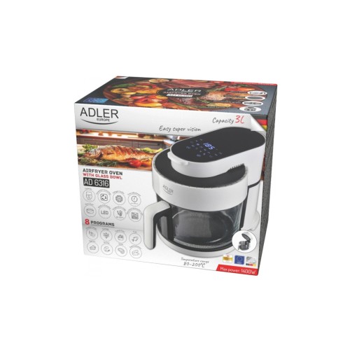 З мультипіччю Adler AD 6316 приготування їжі стане для вас захоплюючим процесом – вона оснащена сенсорною панеллю керування із 8-ма найпопулярнішими попередньо встановленими програмами (курячі крильця, ковбаски, картопля фрі, тарт, креветки, стейк, риба, батат) та кнопками регулювання температури їжі (від 80°C до 200°C).