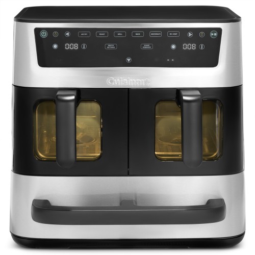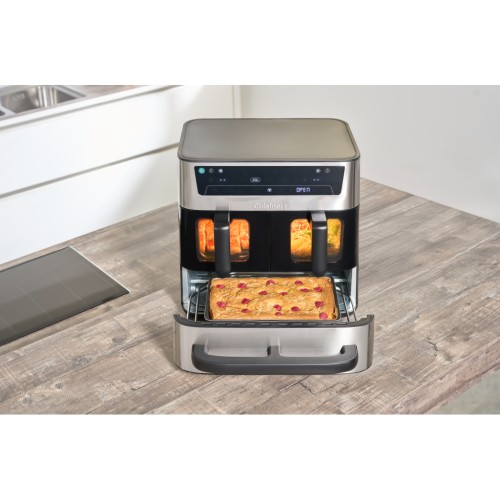 Подвійні кошики оснащені оглядовим вікном та внутрішнім освітленням, дозволяючи контролювати страву, не відкриваючи шухляди. Кожен кошик підтримує функції air fry, roast, grill, bake, re-crisp та dehydrate і нагрівається до 210°C.