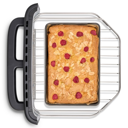 Основою конструкції є два кошики по 4,3 л та велика плоска шухляда-духовка на 5 л, забезпечуючи загальну місткість 13,6 л. Ви легко приготуєте курча, овочі або 30-сантиметрову піцу.