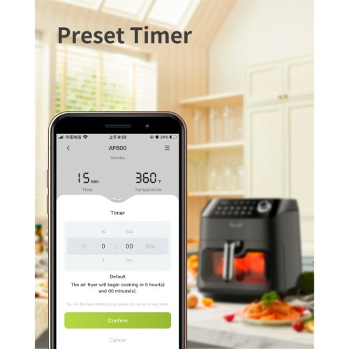 У програмі Kyvol можна дистанційно налаштовувати час і температуру приготування за допомогою таких функцій як: оригінальні рецепти, відкладений старт, історія приготування в реальному часі.
