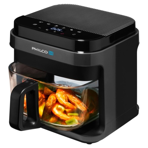 Мультипіч-аерофритюрниця Philco PHAF 2000 оснащена скляною ємністю для смаження, яка на відміну від пластикових чи тефлонових ємностей, не виділяє шкідливих речовин. Високоякісне скло дозволяє контролювати процес приготування улюблених страв від початку до кінця, і вам не потрібно постійно доставати ємність. Завдяки використанню гарячого повітря, страви виходять набагато кориснішими та потребують для готування значно менше олії.