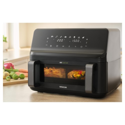 Ця модель оснащена сучасним електронним термостатом та функціями автоматичного регулювання температури, що забезпечує оптимальні умови приготування. Вона має 8 автоматичних програм для швидкого вибору режимів смаження, запікання, грилю та інших функцій. Завдяки системі термообігу, їжа готується рівномірно та збережує свої корисні властивості. Корпус виготовлений із високоякісних матеріалів у стильному чорному кольорі, з антипоразіговими ніжками для стабільності і безпеки під час роботи. Об’єм 9 літрів дозволяє готувати великі порції для всієї родини. Це ідеальний пристрій для тих, хто цінує швидкість, комфорт та здоровий спосіб життя.