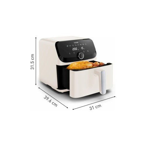 Tefal Easy Fry Mega EY855 — потужна аерофритюрниця 1700 Вт з чашею 7.5 л для великої родини. Готує хрустку картоплю фрі, курку, м’ясо, рибу, овочі та випічку майже без олії завдяки технології Extra Crisp. 8 автоматичних програм (фрі, курка, стейк, риба, овочі, випічка, розігрів, дегідратація) + ручний режим. Сенсорне управління, таймер, підтримка тепла, знімна антипригарна чаша. Стильний бежевий колір — гармонійно виглядає на будь-якій кухні.