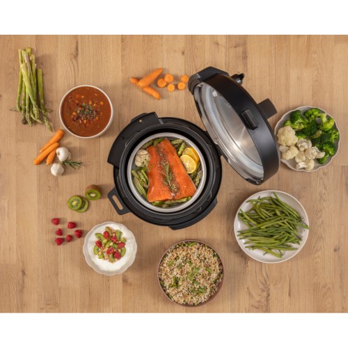 У вашому розпорядженні 8 автоматичних програм, серед яких є Підтримання температури, Таймер відтермінування та Пароварка. Функція приготування під тиском робить страви значно швидше, зберігаючи їхній смак та користь. Налаштування часу приготування та можливість відкладеного старту допоможуть спланувати обід чи вечерю заздалегідь. А завдяки функції підтримання тепла, їжа залишиться свіжою та апетитною до моменту подачі.