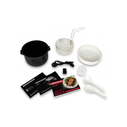 Мультиварка REDMOND RMC-M90 - незамінний помічник на кухні зайнятої людини. Адже, вона може варити, смажити, пекти, запікати, тушкувати і готувати на пару. Функція відкладеного старту до 24 годин, дозволить приготувати страви в потрібне для вас час, а відключається функція підтримки температури збереже готову страву в гарячому стані. Мультиварка оснащена зручним дисплеєм з підсвічуванням з сенсорною панеллю керування. Містка чаша на 5 літрів з міцним антипригарним керамічним покриттям оснащена зручними пластиковими ручками, завдяки яким виймати її стало набагато зручніше і безпечніше. Функція 3D-нагріву забезпечує прогрівання продуктів більш рівномірно, так як нагрівальні елементи розташовані в трьох сторонах: по периметру чаші, в кришці і на днище. Мультиварка має вбудований мікропроцесор, який управляє ходом приготування в залежності від обраної вами програми, а спеціальний паровий клапан і система герметичного закриття кришки створюють ідеальні умови для приготування їжі, не дозволяючи улетучиваться корисним речовинам.