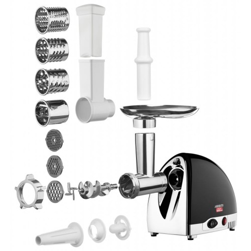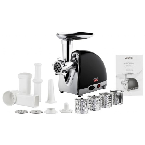 М'ясорубка ARDESTO MGL-2250R з потужністю 1800 Вт, змінними насадками для приготування фаршу, домашніх ковбасок і кебе, а також насадкою для тертя та шаткування.