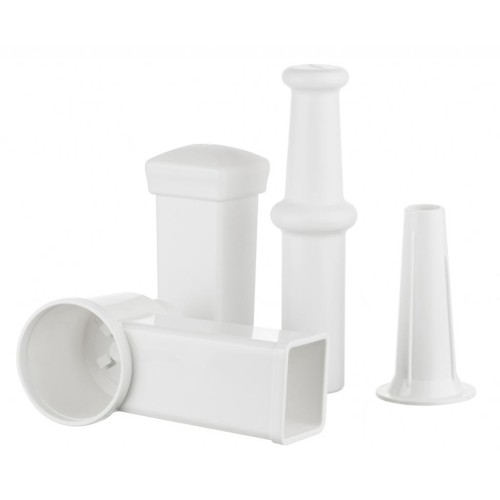 Двигун потужністю 1800 Вт отримав захист від перегрівання та функцію реверсу. Продуктивність пристрою — 2 кг м'яса на хвилину. Три металеві решітки призначені на різну дрібність фаршу — 3 мм, 5 мм і 7 мм. Базові насадки призначені для формування домашніх ковбасок і кебе. Металевий лоток можна використовувати для підготовлених інгредієнтів, а проштовхувач пришвидшить процес приготування фаршу. Додатковий блок для тертя та шаткування складається з декількох частин — трьох насадок для тертя різних розмірів, насадки для шаткування, а також додатковий штовхач.