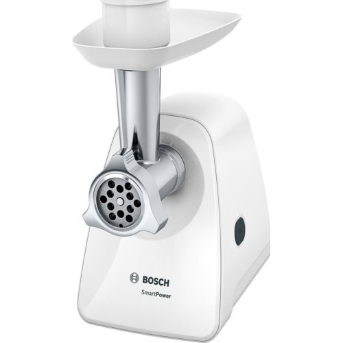 Bosch MFW2514W — це багатофункціональна м’ясорубка, що поєднує високу продуктивність, компактність і надійність. Завдяки потужності 1500 Вт, прилад легко подрібнює до 1,7 кг м’яса за хвилину, дозволяючи швидко приготувати фарш навіть для великої родини. Модель вирізняється компактним білим корпусом, стійкою основою, інтуїтивним керуванням та легкою чисткою. Завдяки якості Bosch ви отримаєте довговічний і ефективний інструмент, який значно спростить щоденне приготування їжі.