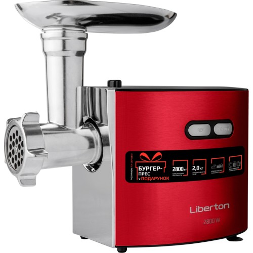Потужність: 2800 Вт (при заклинюванні); Продуктивність: 2 кг/хв.; Функції: реверс, захист від перегріву; Аксесуари: 3 диска для помелу (3 мм/5 мм/7 мм), 3 барабани для терки і шинкування, насадка для ковбас, насадка для кебе, соковитискач для томатів, бургер-прес, штовхач, металевий лоток; Матеріал шнека: нержавіюча сталь; Матеріал корпусу: нержавіюча сталь.