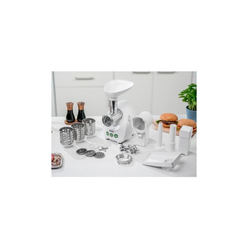Замовивши м'ясорубку Zelmer ZMM4048B, ви отримуєте практично універсального помічника на кухні. Крім трьох ґрат з різним діаметром для отримання фаршу різної щільності в комплекті є насадка для ковбас, штовхач, шнекова насадка з трьома терками. Потужність м'ясорубки 1900 Вт, що дає змогу отримати 2,5 кг переробленого м'яса або овочів/фруктів за 1 хвилину. Невеликий розмір м'ясорубки дозволяє зберігати її прямо в кухонній шафі, не займаючи багато простору.