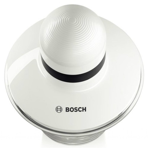 Подрібнювач укомплектований двома насадками, виготовленими з пластику та нержавіючої сталі, чаша виконана із пластику, тому мити всі складові можна під теплою проточною водою. Bosch MMR 08A1 працює від електромережі і забезпечує якісне змішування і подрібнення.