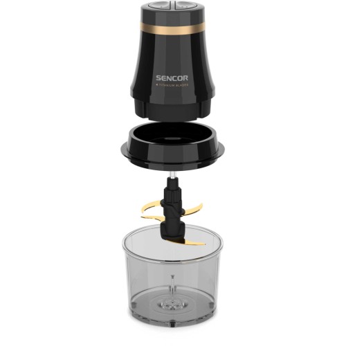 Подрібнювач потужністю 400 Вт із пластиковою чашею об’ємом 1 л. Оснащений двома швидкостями та додатковим режимом збивання. Насадки виготовлені з нержавіючої сталі.
