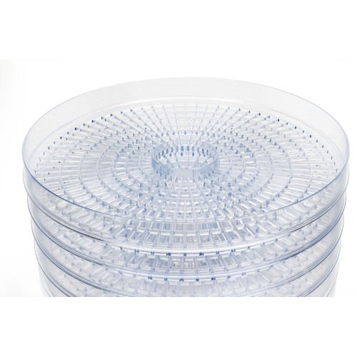 Опис сушки Hölmer HFD-30W Сушка для овочів, фруктів і ягід Hölmer HFD-30W– проста, економічна й надійна помічниця для тих, хто слідує сучасному тренду харчуватися смачно й корисно цілий рік. Ефективна й ощадлива Цілих 5 завантажувальних піддонів із прозорими стінками дозволять сушити багато й швидко, раціонально та економно споживаючи електроенергію. За рахунок конвекції, пристрій має максимально ефективний теплообмін, споживаючи потужність 300 Вт. Спеціальний захист від перегріву простежить за тим, щоб процес проходив коректно й безпечно. Містка й багатофункціональна 5 незалежних піддонів висотою 3 см і діаметром 32 см дозволяють викласти продукти в п'ять рівнів і сушити їх одночасно. Особливості конвекції перешкоджають змішуванню запахів, якщо ви сушите різні продукти одночасно. Сушіть овочі, фрукти, ягоди, лікувальні трави, домашні макаронні вироби, хліб, гриби, рибу й багато чого іншого. Для дрібних ягід передбачена спеціальна насадка. Також сушка дозволяє готувати домашню пастилу. Температурні режими для будь-яких продуктів 7 температурних режимів від 35 до 70º С призначені для різних типів продуктів в залежності від їхньої структури й вологості. Для кожного продукту знайдеться свій самий оптимальний режим температури. Перемикання режимів реалізоване надійним, механічним способом. Екологічність Всі лотки, включаючи сам пристрій, виготовлені з екологічного харчового пластику, що в процесі роботи не виділяє шкідливих речовин. Крім того, пластик має підвищену стійкість до ударів і подряпин.