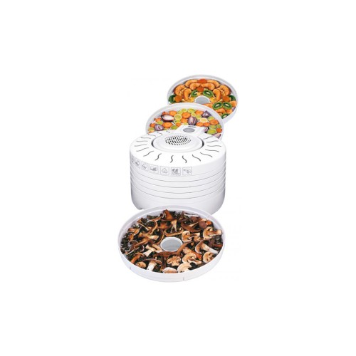 Сушарка для харчових продуктів MSG-01 оснащена п'ятьма ситами з можливістю регулювання їх висоти. Гриби або інші продукти наріжте на шматочки такого розміру, щоб вони вільно поміщалися між ситами. Видування запускається кнопкою у верхній кришці.