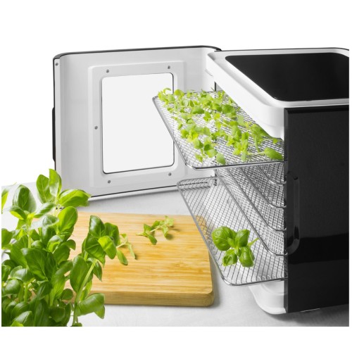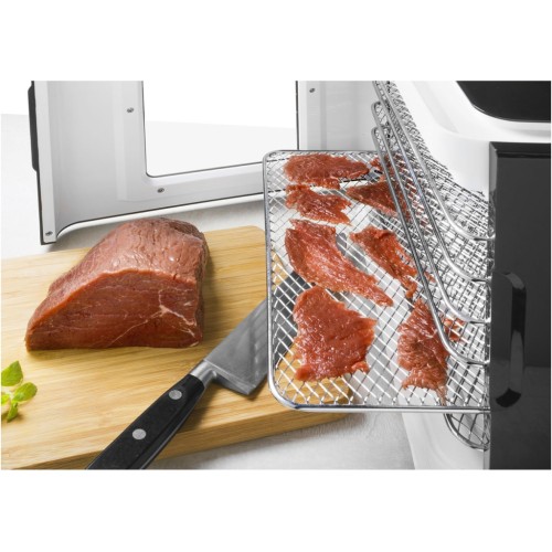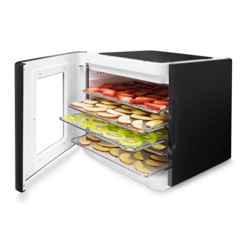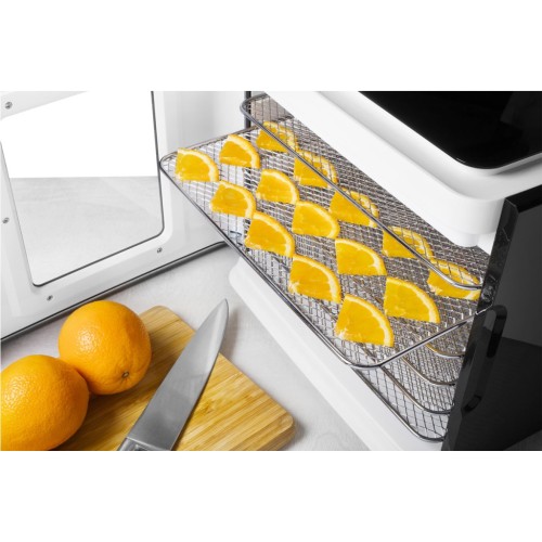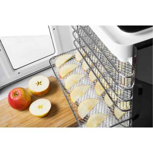 Завдяки горизонтальному потоку повітря температура однакова на всіх рівнях, і вам не потрібно витрачати час на переміщення окремих тарілок у процесі зневоднення.