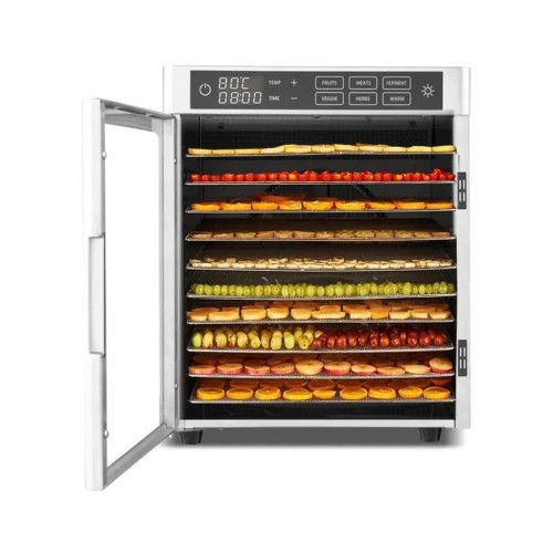 • Рівномірне сушіння на 10 рівнів — потужний вентилятор з горизонтальним потоком повітря забезпечує стабільну температуру та однаковий результат на кожному лотку.