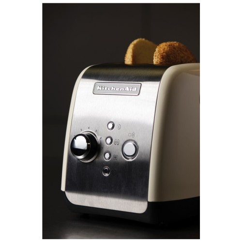 Основні функції тостера KitchenAid 5KMT221EAC включають в себе чотири вишукані опції: «підтримання тепла», «розморожування», «бейгл» і «розігрів» для оптимального приготування тостів і чудового початку сніданків і чаювань. Навіть ця менша версія має дуже широке 3-см відділення для розміщення товстих скибочок сільського хліба та випічки. Ви можете задовольнити смаки всіх членів сім'ї з сімома ступенями піджарки від легкого до підрум'янення грунтовної прожарювання майже як на грилі. Завбачливе інженерне рішення включає в себе функцію 3-хвилинного підтримання тепла, якщо ви поїхали і вчасно не отримали тост. Ви також можете вручну розігріти тост протягом 30 секунд. Не вистачило свіжого хліба? М'яко розморозьте заморожений хліб, щоб він став як свіжий. Прикрасьте ланчі та перекуски завдяки функції приготування бейглов і булочок, золотистих всередині і теплих зовні. Функція ручного підйому і спуску дозволяє перервати процес підсмажування в будь-який час. Звукове сповіщення дає вам знати, коли хліб готовий.