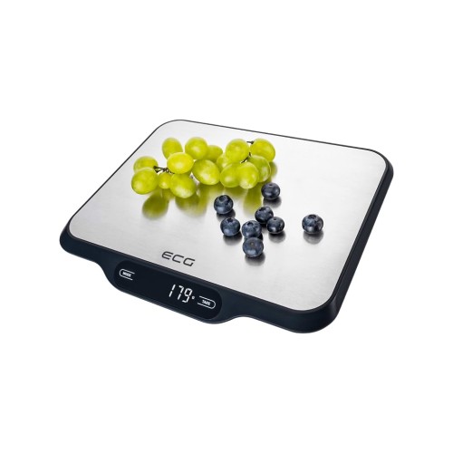 Ваги кухонні ECG KV 215 S з максимальним навантаженням 15 кг і кроком виміру 1 грам, оснащені плоскою платформою з нержавіючої сталі.