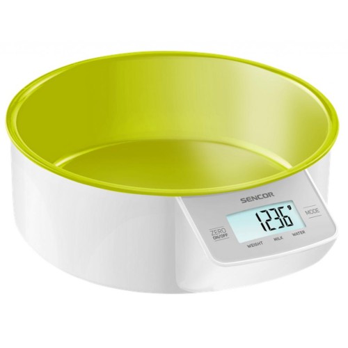 Ваги кухонні Sencor SKS4004GR - електронні кухонні ваги зі знімною салатовой чашею призначені для побутового використання. Крім стандартного зважування, на цих терезах можна автоматично відображати на дисплеї обсяг молока або води. Сенсорна панель управління дозволяє одним дотиком руки вибрати необхідну функцію. Оснащені кухонні ваги 4-ма датчиками для більшої точності зважування.