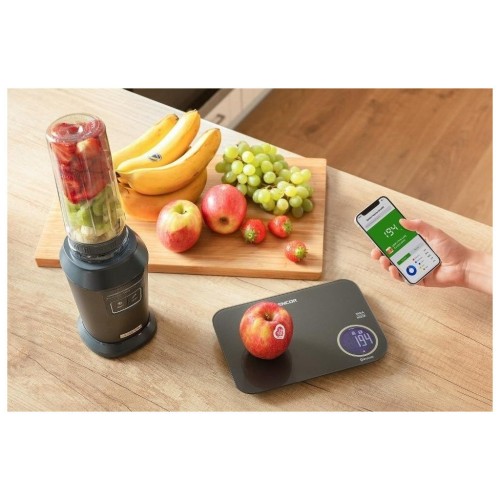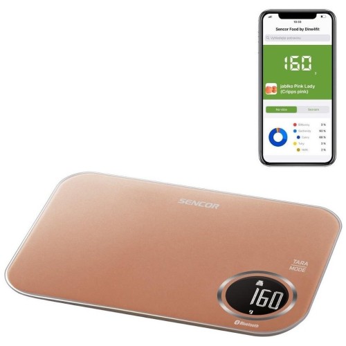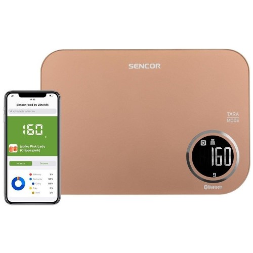Ваги Sencor кухонні. Оригінальний додаток Sencor FOOD, створений у співпраці з авторами Dine4Fit з багатою базою даних продуктів харчування. Дає докладну інформацію про вживану їжу (вуглеводи, білки, жири, холестерин, клітковина…). РК-дисплей з білим підсвічуванням. 3 режими: режим зважування/режим вимірювання об'єму молока/режим вимірювання об'єму води.