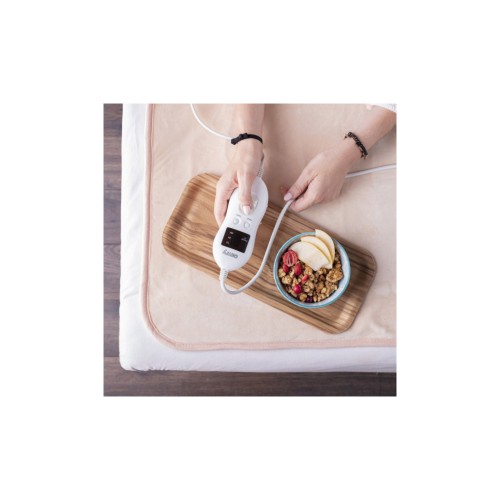 Його м’яка, приємна на дотик тканина забезпечує приємні тактильні відчуття, а нековзка основа запобігатиме ковзанню по поверхні матраца. Електропростирадло просте у догляді та підтримує в пральній машині за температури 30°C.