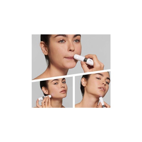 Міні бритва Braun FS1000 зрізає волосся максимально близько до шкіри, що дає можливість розгладжувати шкіру, створюючи основу для нанесення так званого безшовного макіяжу.