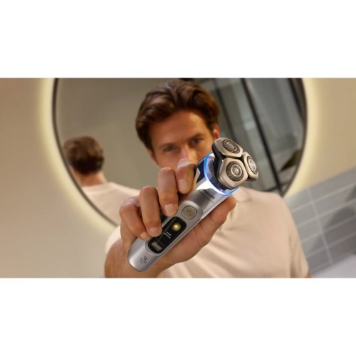 Адаптуйте режим гоління до своїх потреб. Наша бритва на 100% водонепроникна, тому ви можете обрати комфортне сухе гоління або освіжаюче вологе. Ви також можете голитися з гелем чи піною, навіть у душі. Очистіть електробритву одним натисканням кнопки. Просто відкрийте головку бритви й промийте її водою.
