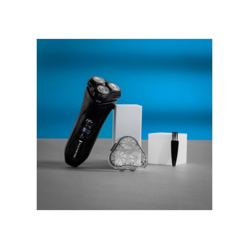 Насолоджуйтесь комфортним голінням і повсякденним стилем без зусиль із ротаційною бритвою Remington R4002 Style Series. Леза Dual Track забезпечують надійну роботу, а гнучка шия повторює контури вашого обличчя, захоплюючи незграбні волоски навіть у важкодоступних місцях. Якщо вам подобається відчуття свіжості обличчя після чистого гоління, ви можете насолоджуватися до 40 хвилин безперервної роботи після повного заряджання. Для укладання волосся на обличчі висувний тример допоможе вам сформувати вуса або бакенбарди, а 3-денний стайлер для щетини допоможе вам тримати під контролем 3-денний вигляд щетини, який вам подобається.