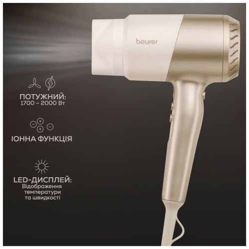Фен Beurer HC 40 — це поєднання німецької якості та витонченого дизайну, які зроблять ваш догляд за волоссям максимально комфортним та ефективним. З потужністю у 2000 Вт, цей побутовий фен дозволяє швидко висушити волосся, гарантуючи при цьому дбайливе ставлення до кожного пасма. Завдяки легкій вазі в 0.65 кг та ергономічній формі, Beurer HC 40 зручно тримати в руці, що робить процес укладання ще приємнішим.