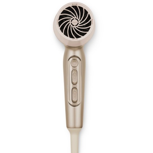 Фен Beurer HC 70 – це ідеальний інструмент для тих, хто прагне поєднати естетику, ефективність та турботу про волосся. Належачи до преміальної серії HairCare, цей фен вирізняється елегантним бежево-золотим дизайном, який стане чудовим доповненням до вашої домашньої колекції приладів для догляду за собою. Завдяки своїй легкій вазі у 0,7 кг і ергономічній конструкції, Beurer HC 70 забезпечує зручність і легкість у використанні, дозволяючи неперевершено створювати укладки без втоми.