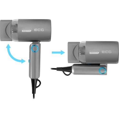 Фен ECG Modifica Grigio Piccolo – це поєднання сучасного дизайну, функціональності та практичності, яке гарантує якісну та комфортну укладку волосся в будь-яких умовах. Завдяки своїм компактним розмірам та складній ручці, він стає незамінним вибором для подорожей, займаючи мінімум місця у вашому багажі.