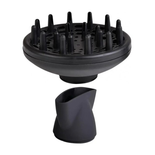 Фен ECG VV 115 комплектується насадками-дифузором та концентратором, що робить його універсальним засобом для різноманітних стилів укладки. Дифузор спеціально розроблений для збільшення об'єму і підкреслення природної текстури кучерявого волосся. Насадка-концентратор є ідеальним інструментом для точного спрямування потоку повітря, що допомагає створювати гладкі, прямі зачіски.