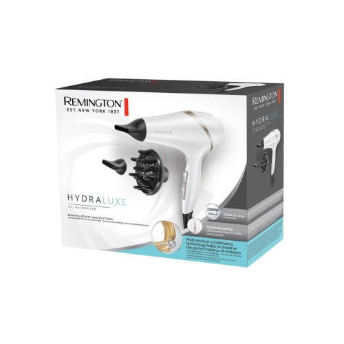 Фен Hydraluxe AC оснащений технологією кондиціонування Moisture Lock, яка допомагає зберегти ідеальний баланс вологи у волоссі, в той час як активне іонне кондиціювання надає їм блиск і перешкоджає сплутування без кучерявого волосся *. Режим настройки температури Hydracare дозволяє укладати волосся при більш низькій температурі для отримання прекрасних результатів, не турбуючись про надмірне тепловому пошкодженні волосся.