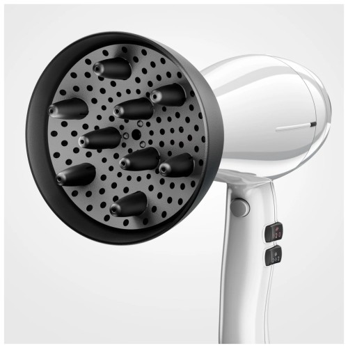 Фен комплектується двома насадками: концентратором і дифузором, що відкривають безліч можливостей для творчості в укладанні. Від ідеально прямого до хвилястого — тепер все під вашим контролем. До того ж, довжина шнура у 3 метри надає свободу рухів, а петля для підвішування робить зберігання фена максимально зручним.