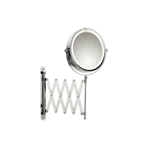 Настінне дзеркало KELA Valeria - висувне, що обертається, з підсвічуванням! Настінне дзеркало - це корисний помічник та ідеальний варіант для щоденного використання у ванній кімнаті. Висувне дзеркало настінне KELA Valeria виготовлено з блискучого хромованого металу. Одна сторона дзеркала забезпечує 1-кратне збільшення, а зворотня - 5-кратне. Дзеркало KELA Valeria можна розсунути на довжину від 20 до 65 см. Саму дзеркальну поверхню можна повернути в потрібне положення. Крім того, ви можете використовувати тумблер, щоб підсвітити дзеркальну поверхню білим світлодіодом! В комплект входять аксесуари (без батарейок) для швидкого та легкого настінного монтажу. Дзеркало для ванної кімнати з підсвіткою KELA Valeria: з металу, загальна висота 36 см. Діаметр дзеркальної поверхні: 17 см. Для світлодіодного підсвічування потрібні 4 батареї AAA.