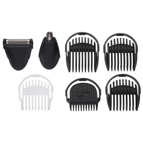 інструкція; тример; насадка для носа та вух; комплект насадок для стриження 5 шт.; олива для змащування