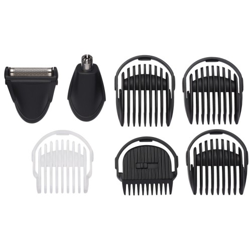 інструкція; тример; насадка для носа та вух; насадка для тіла; насадка для гоління; комплект насадок для стриження 5 шт.; олива для змащування; щітка для чищення