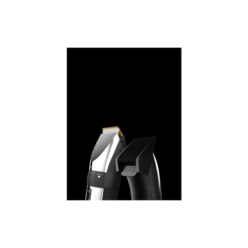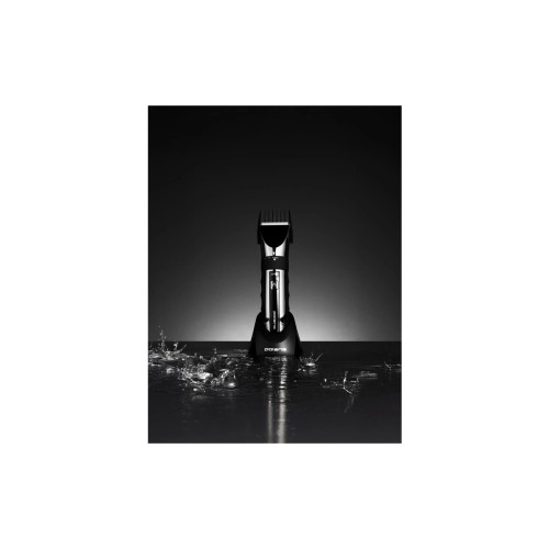 Модель оснащена титаново-керамічними лезами, які легко знімаються для миття під водою, та працює як від акумулятора, так і від мережі. Машинка забезпечує до 180 хвилин автономної роботи після повного заряду.