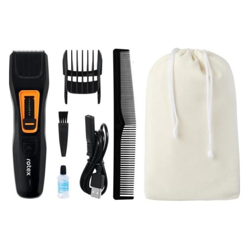 Потужність 2Вт, Машинка для стрижки волосся та бороди. Акумуляторна, бездротова. Гострі загартовані сталеві леза. Ергономічний дизайн корпусу для зручного використання. Щітка для очищення лез, олія. Шнур для заряджання: вх. напр.: AC 220-240 В, 50/60 Гц. 10 рівнів регулюваня довжини, Акумулятор Li-ion Час роботи: 50 хвилин Час зарядки: 90 хвилин Сумка для зручного зберігання. Колір: чорний з оранжевим.