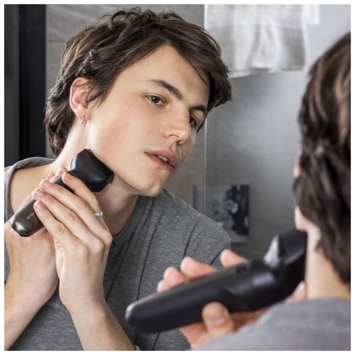 • Повнорозмірна бритва для гоління фольгою забезпечує чистоту гоління в 3 рази швидше. Бритва адаптується до ваших контурів, допомагаючи вам захопити кожну волосинку для чистого та комфортного гоління.