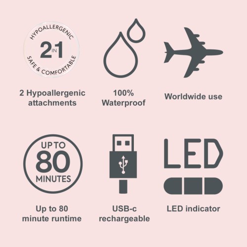 Результат? Гладенька шкіра без подразнення, ідеально підкреслені брови та жодного зайвого волоска. Тример на 100 % водонепроникний, тому його легко очищувати під струменем води. Повна зарядка через USB-C займає лише 90 хвилин, після чого ви можете користуватися пристроєм до 80 хвилин без додаткової підзарядки. Унікальна кришка з вбудованим відсіком для насадки дозволяє зберігати аксесуари компактно та зручно.