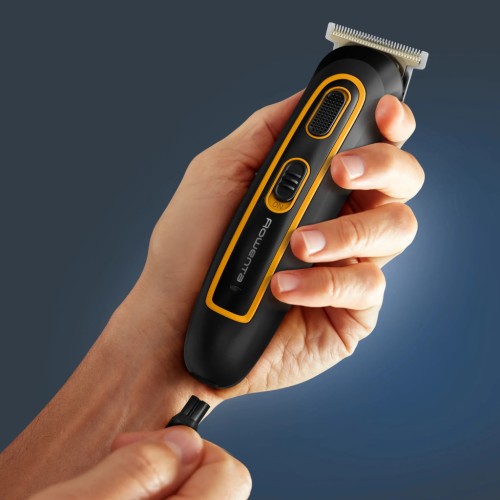 Rowenta Sport Collection TN9113F0 — мультитример 10-в-1 для догляду за бородою, тілом та зоною вух/носа. Літій-іонний акумулятор працює до 120 хв, леза з титановим покриттям і самозаточуванням забезпечують стабільний зріз. Технологія Wet&Dry дає змогу використовувати тример у душі і легко промивати під струменем води.